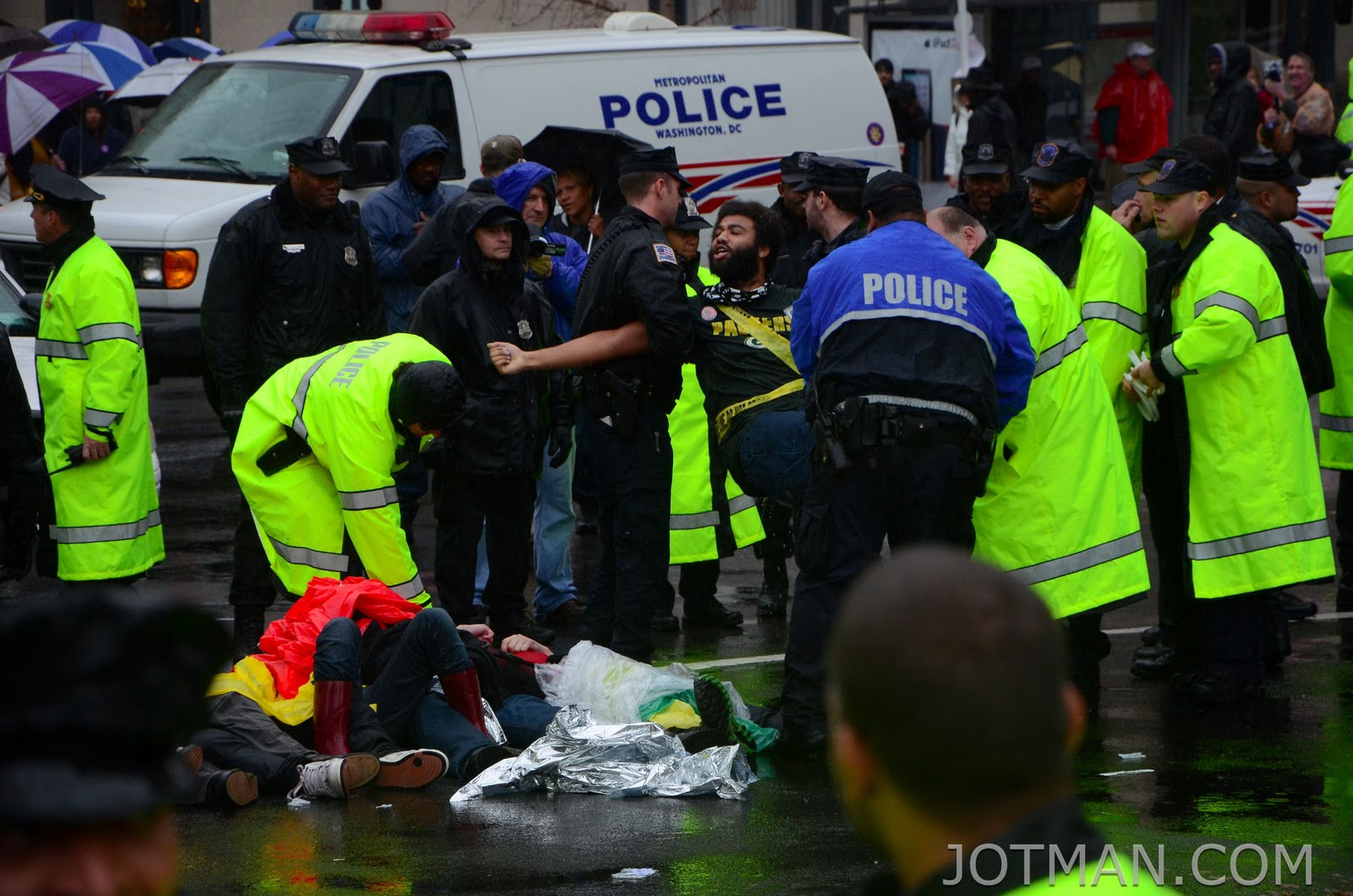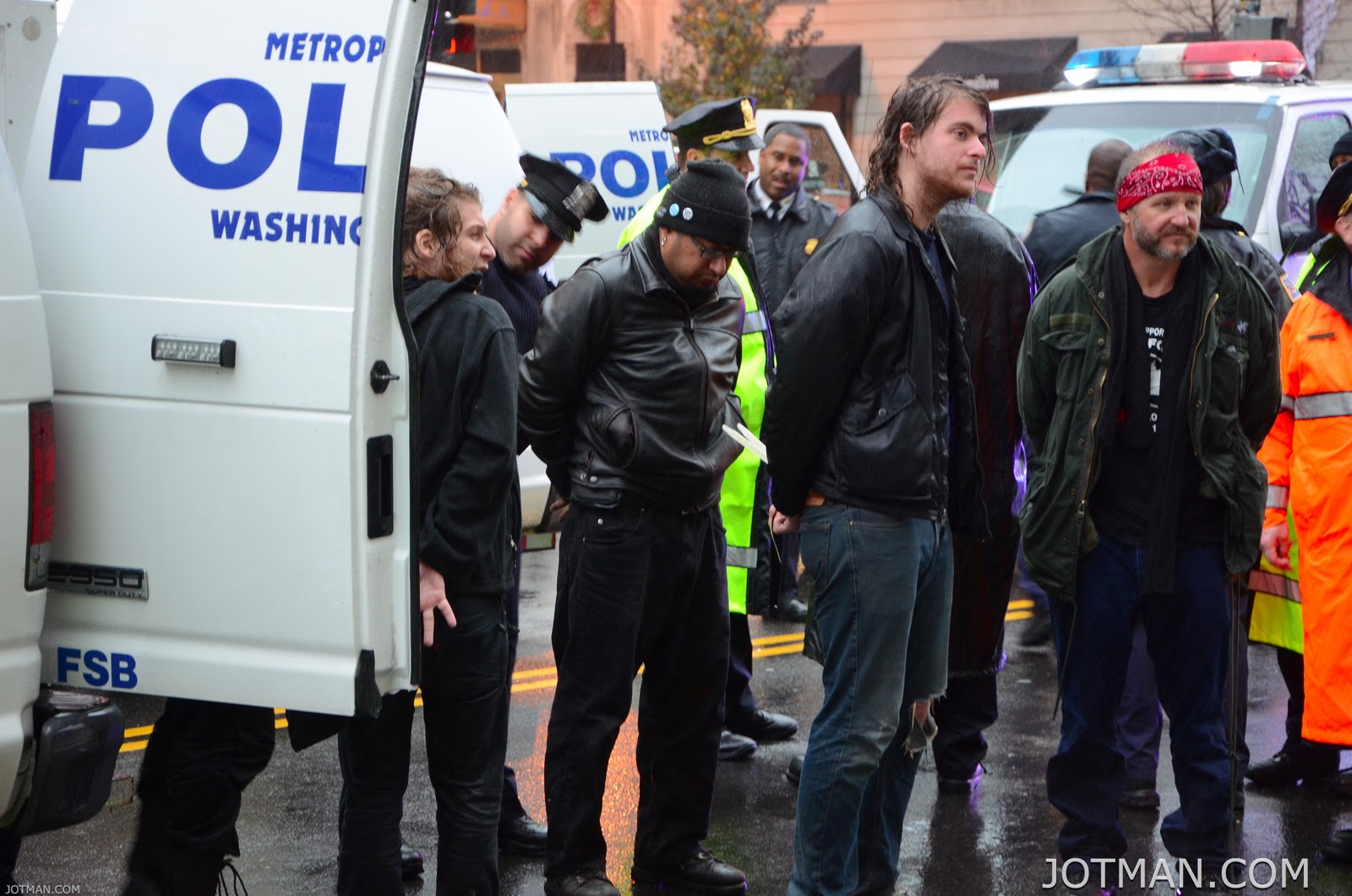 Over 70 protesters were arrested in Washington D.C. Tuesday when Occupy DC took over a section of K-Street around noon. Protesters blocked intersections with tables, newspaper vending boxes, and their own bodies. Mass arrests took place in the early afternoon.