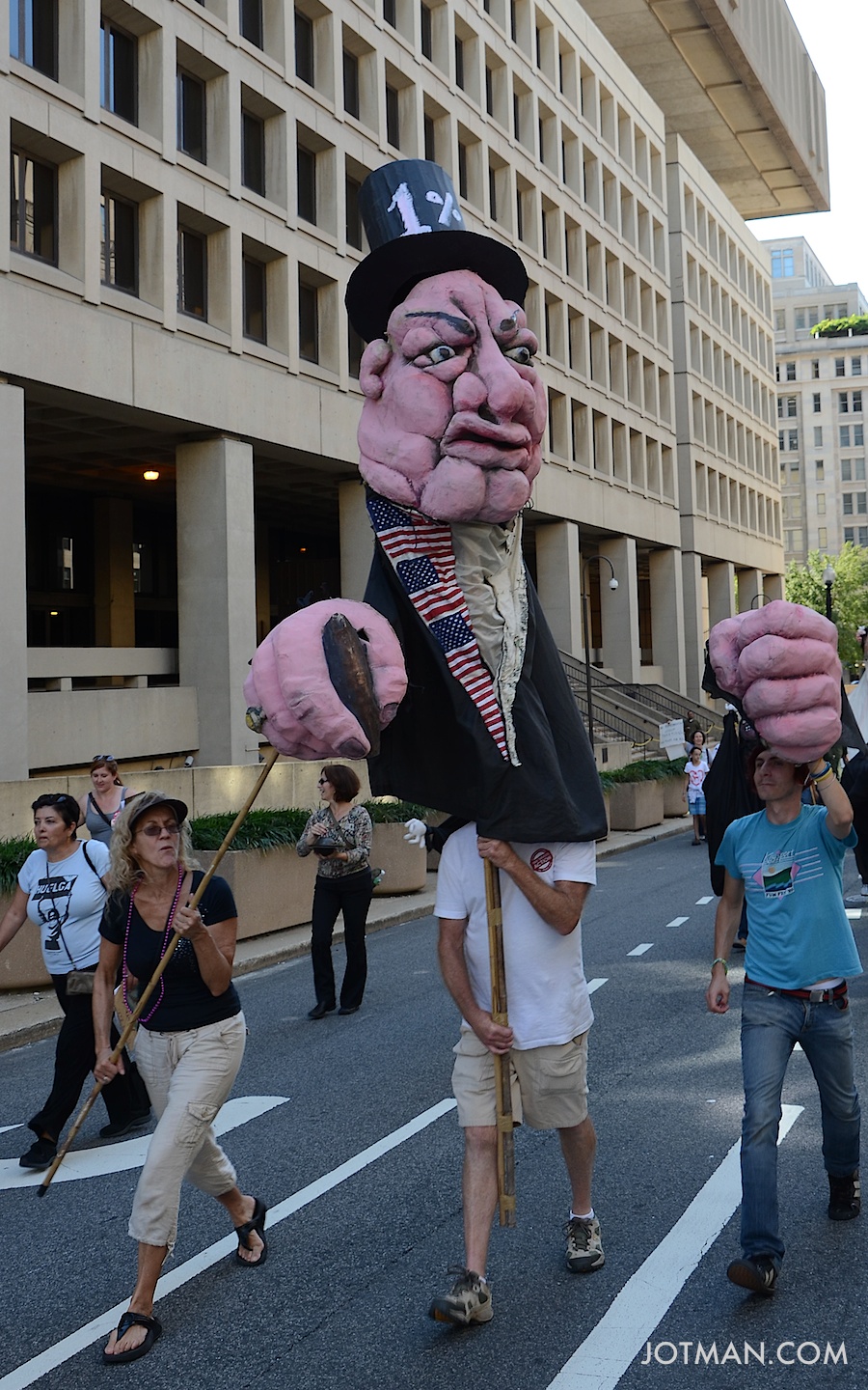 The protesters marched from Freedom Plaza (HQ for Occupy Washington) past the US Treasury building to the White House. They then made their way across Lafayette Park to the United States Chamber of Commerce building.